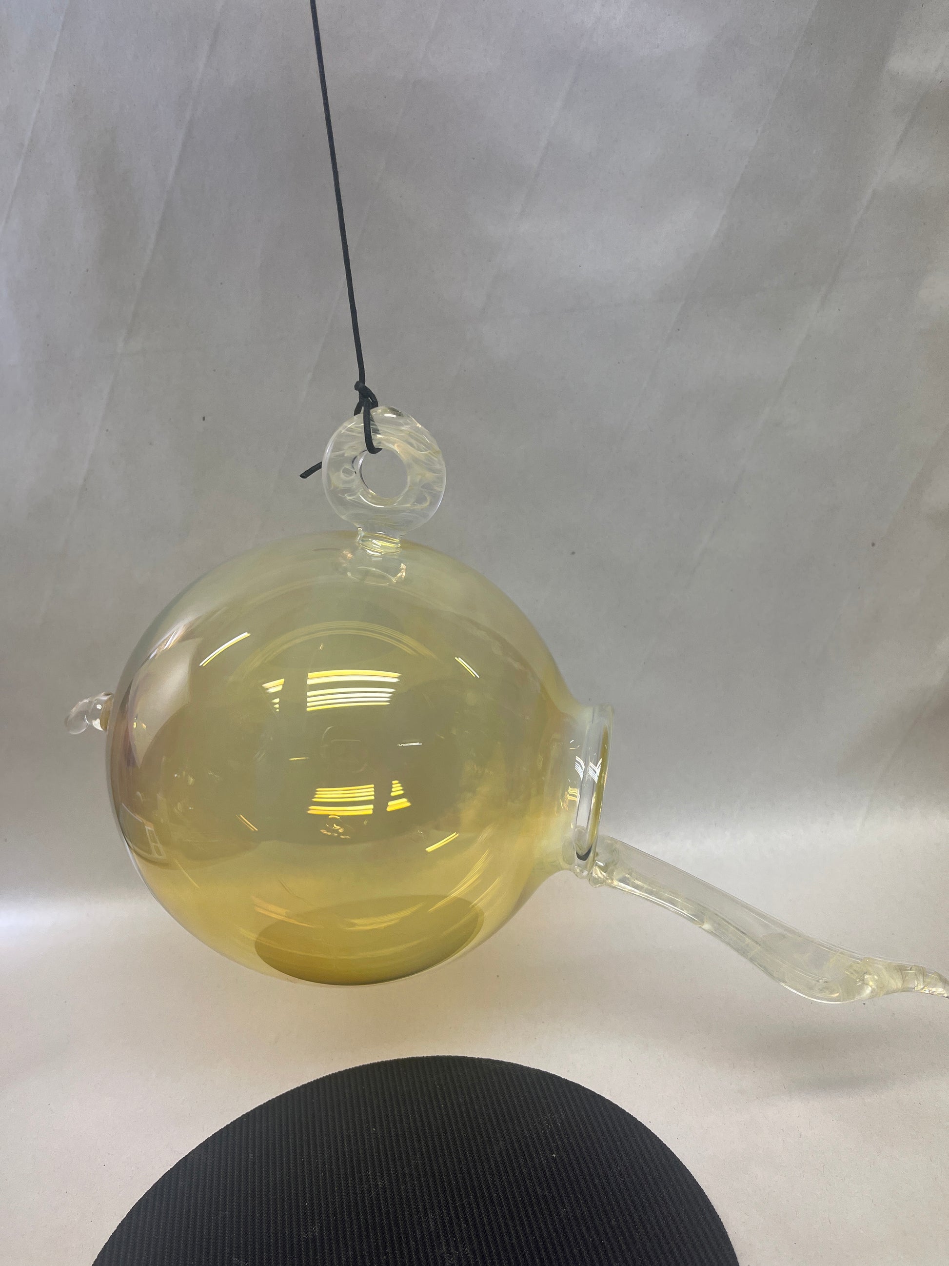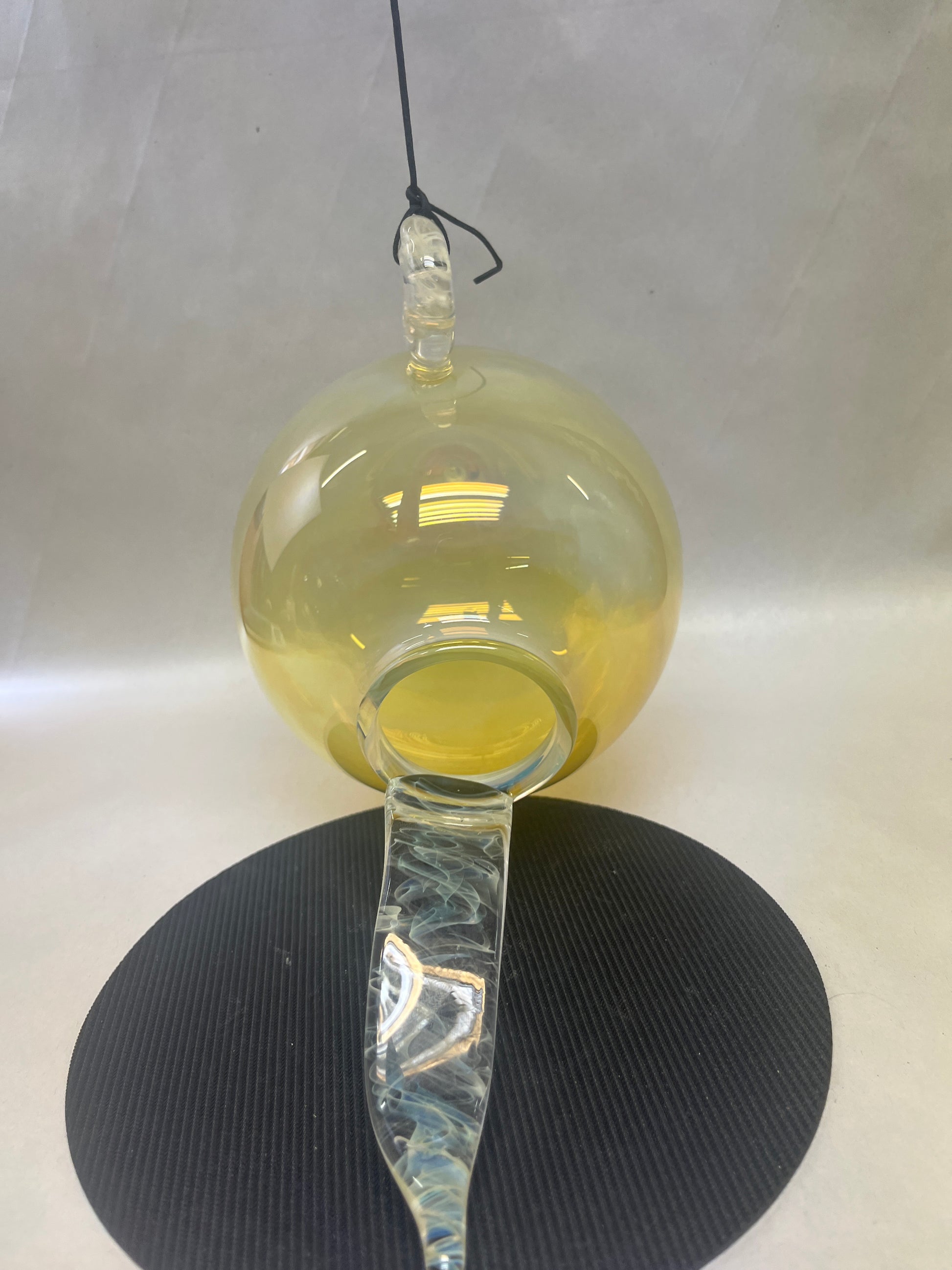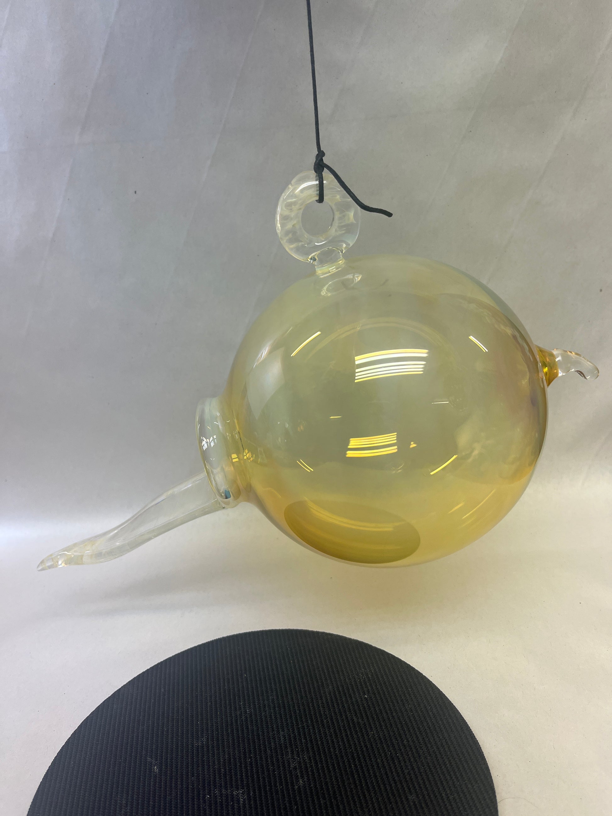 Invite nature closer with this stunning handblown glass bird nest feeder, designed to bring both beauty and function to your outdoor space. Crafted from durable borosilicate glass, this amber-hued orb is shaped with a delicate hanging loop and a gently tapered perch, offering a safe and stylish haven for small nesting birds.