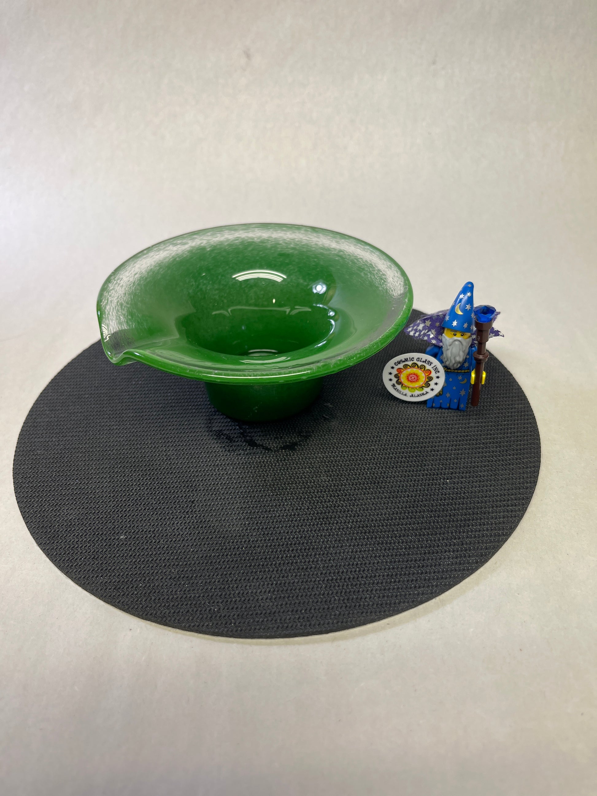 Glass cigar ashtray holds one cigar. Magical!!!