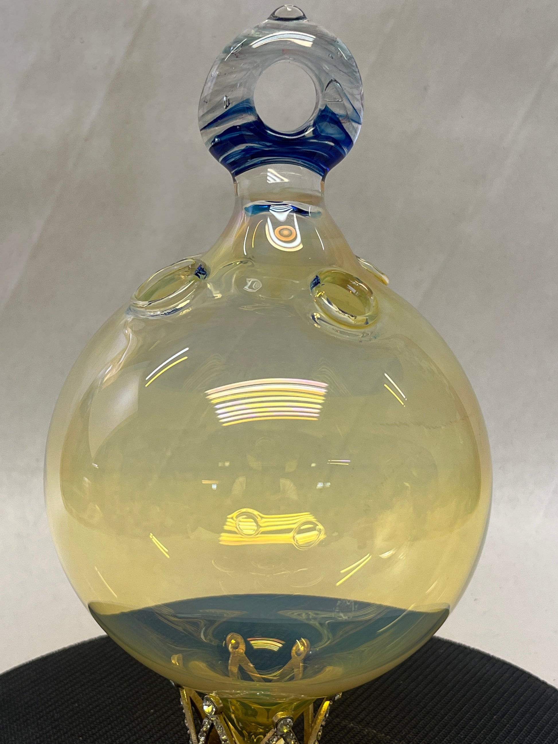 The Four-Hole Rooter Ball is a hand-crafted glass vessel designed specifically for propagating multiple plant cuttings with elegance and efficiency. Each of the four precision-formed holes securely holds a cutting in place, allowing roots to develop evenly in a shared water chamber. Made from durable, crystal-clear borosilicate glass, it offers full visibility of root growth while adding a touch of artisanal charm to any windowsill, greenhouse, or grow station. Ideal for hobbyists and serious plant lovers alike, the Four-Hole Rooter Ball combines form, function, and fire-born beauty—root your plants in style.
