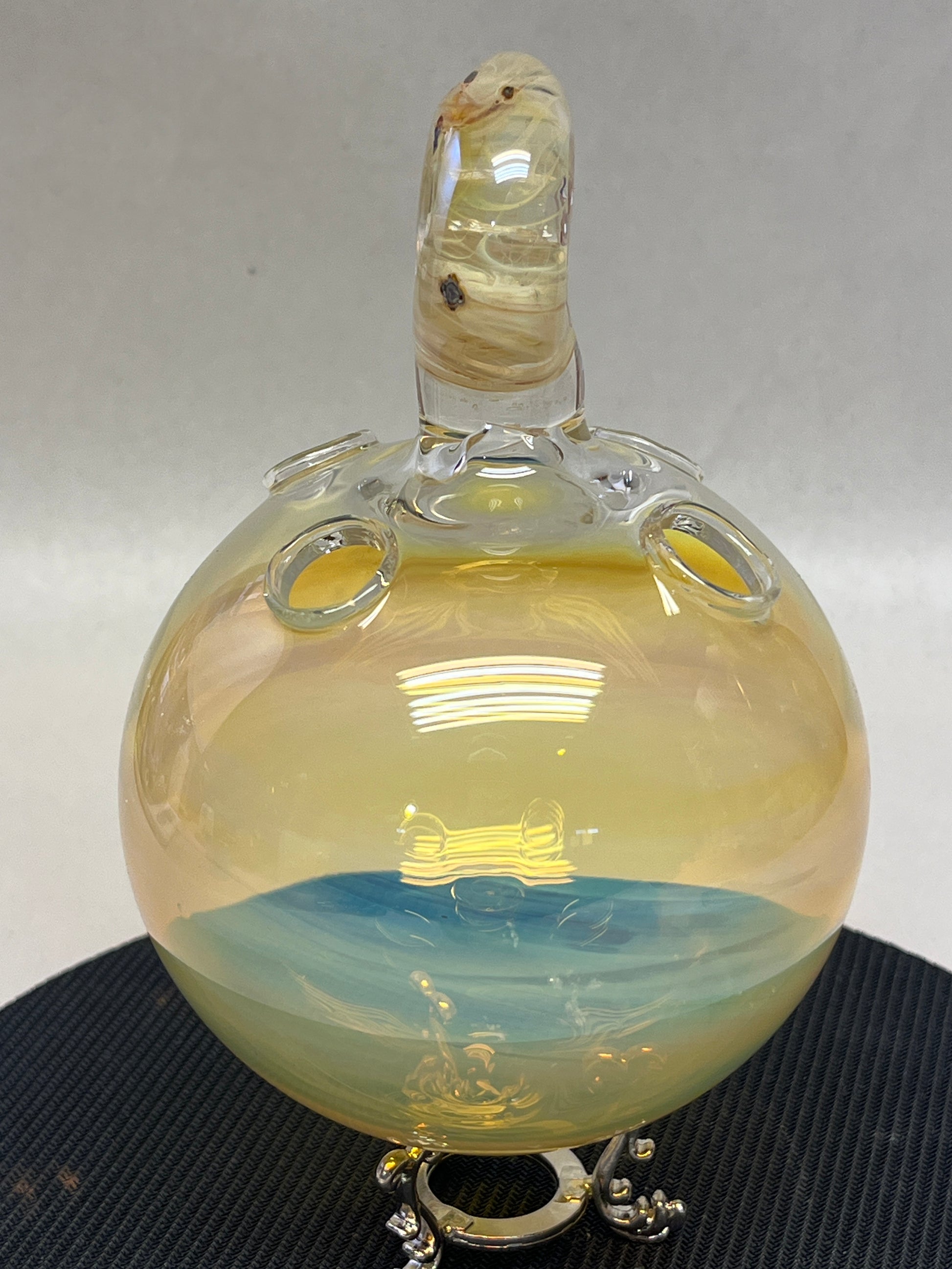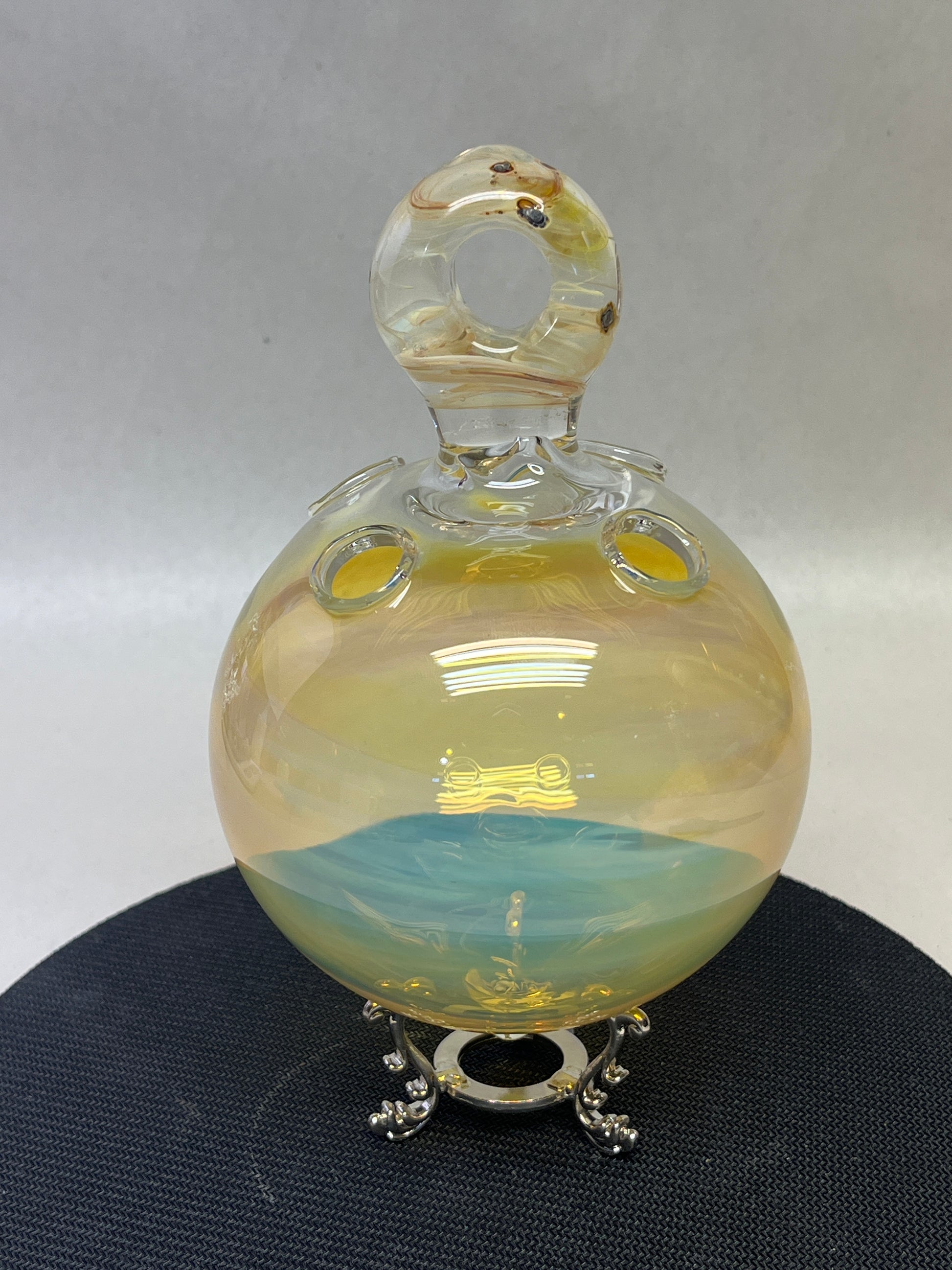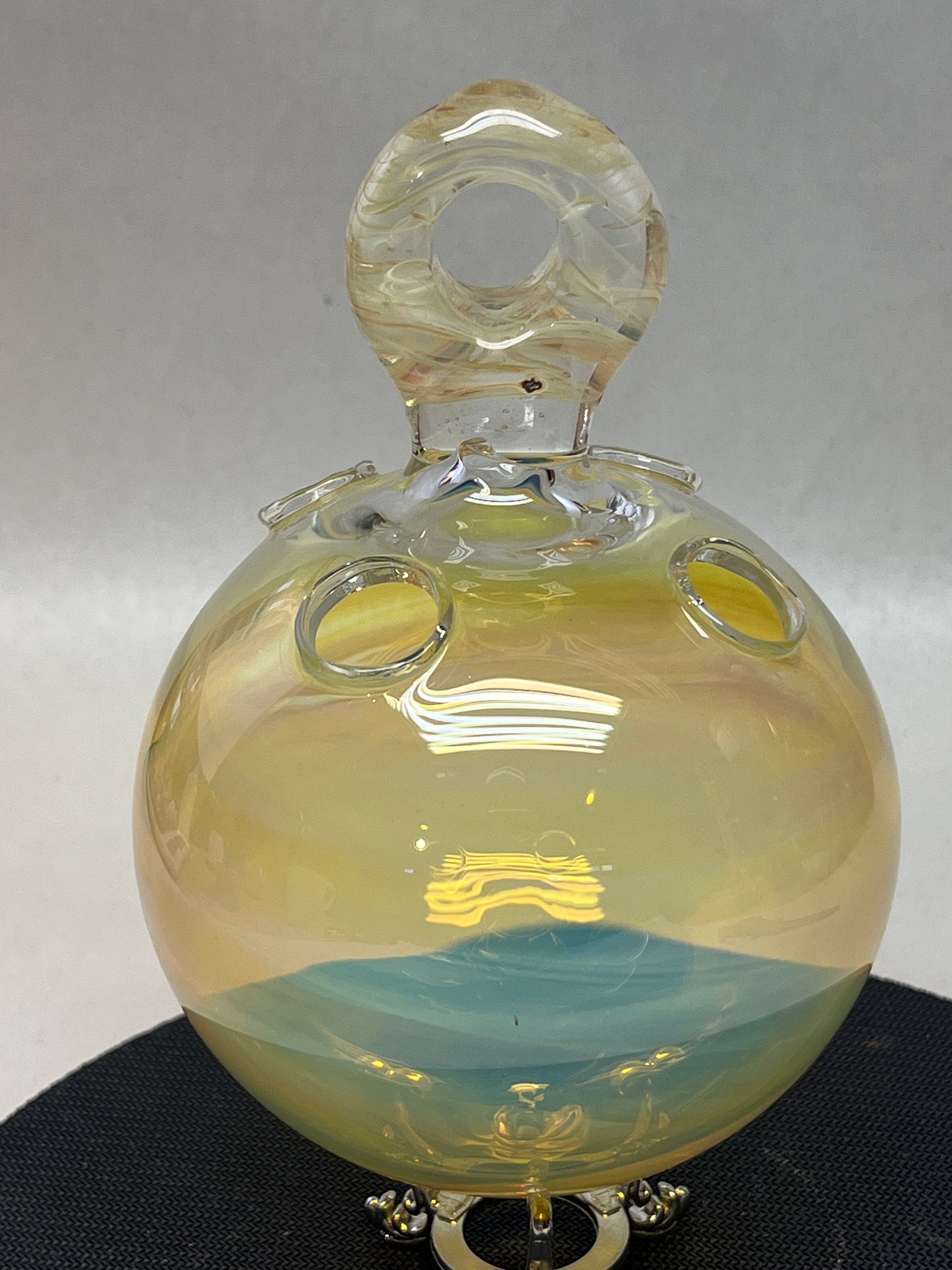 Handcrafted by Throckmorton, the Four-Hole Rooter Ball is the ultimate tool for nurturing healthy plants. Made with precision and care, this glass ball features four strategically placed holes to encourage optimal root growth and airflow. Ideal for propagating cuttings, the Rooter Ball helps your plants develop strong, healthy roots by providing a stable environment while preventing rot. Whether you’re a seasoned gardener or just getting started, this unique, functional piece is a must-have for anyone serious about plant care. Designed for beauty and durability, it’s as much a conversation starter as it is a plant care tool.