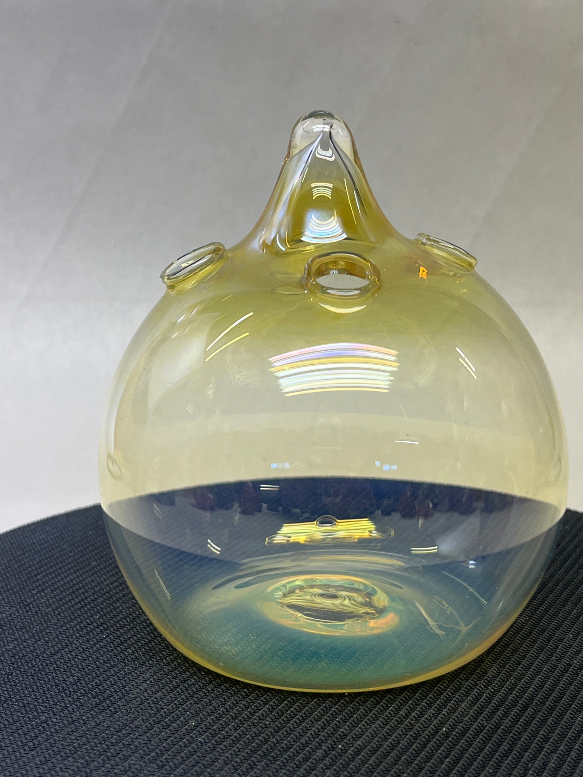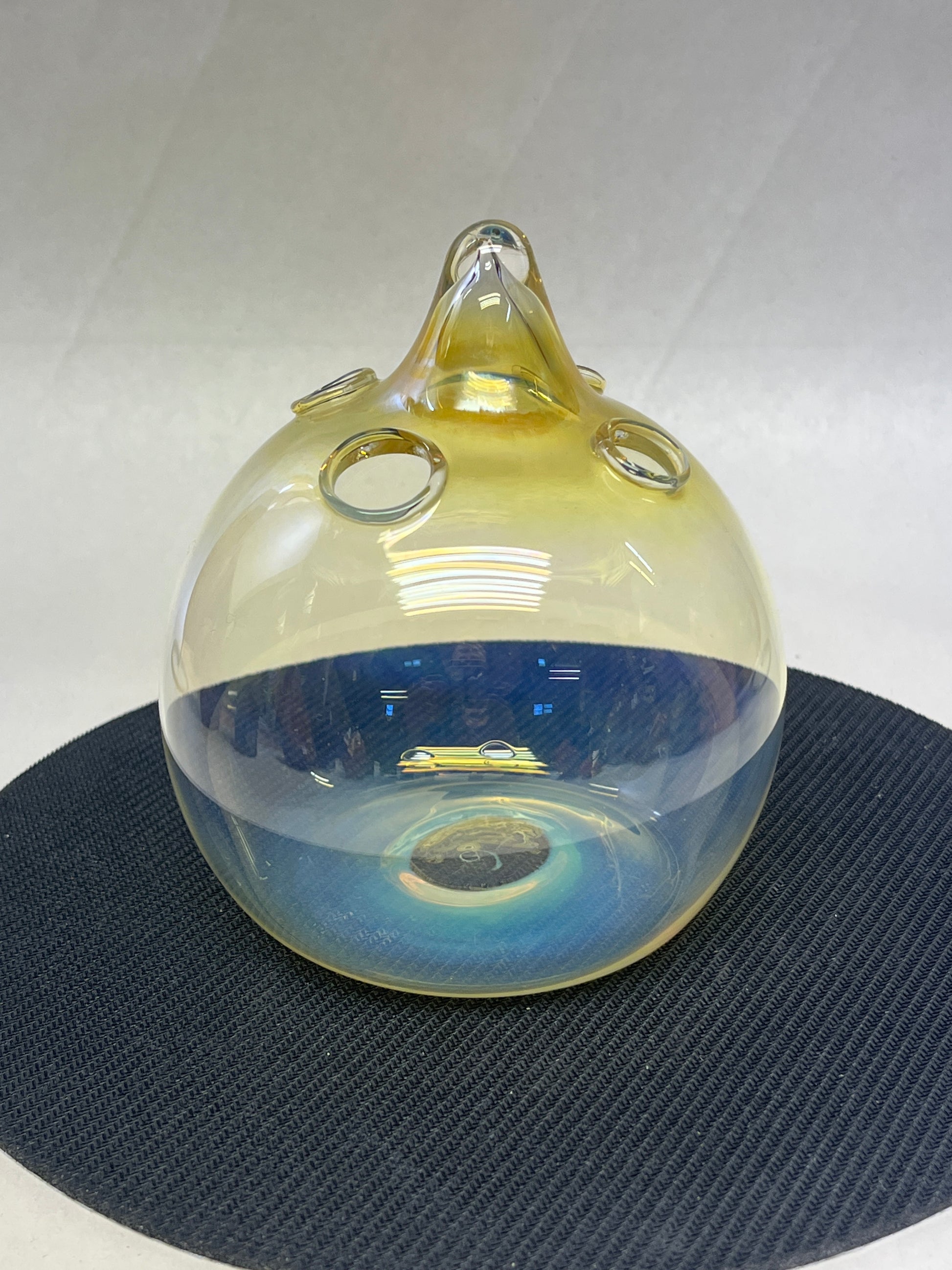 The Four-Hole Rooter Ball is a hand-crafted glass vessel designed specifically for propagating multiple plant cuttings with elegance and efficiency. Each of the four precision-formed holes securely holds a cutting in place, allowing roots to develop evenly in a shared water chamber. Made from durable, crystal-clear borosilicate glass, it offers full visibility of root growth while adding a touch of artisanal charm to any windowsill, greenhouse, or grow station. Ideal for hobbyists and serious plant lovers alike, the Four-Hole Rooter Ball combines form, function, and fire-born beauty—root your plants in style.
