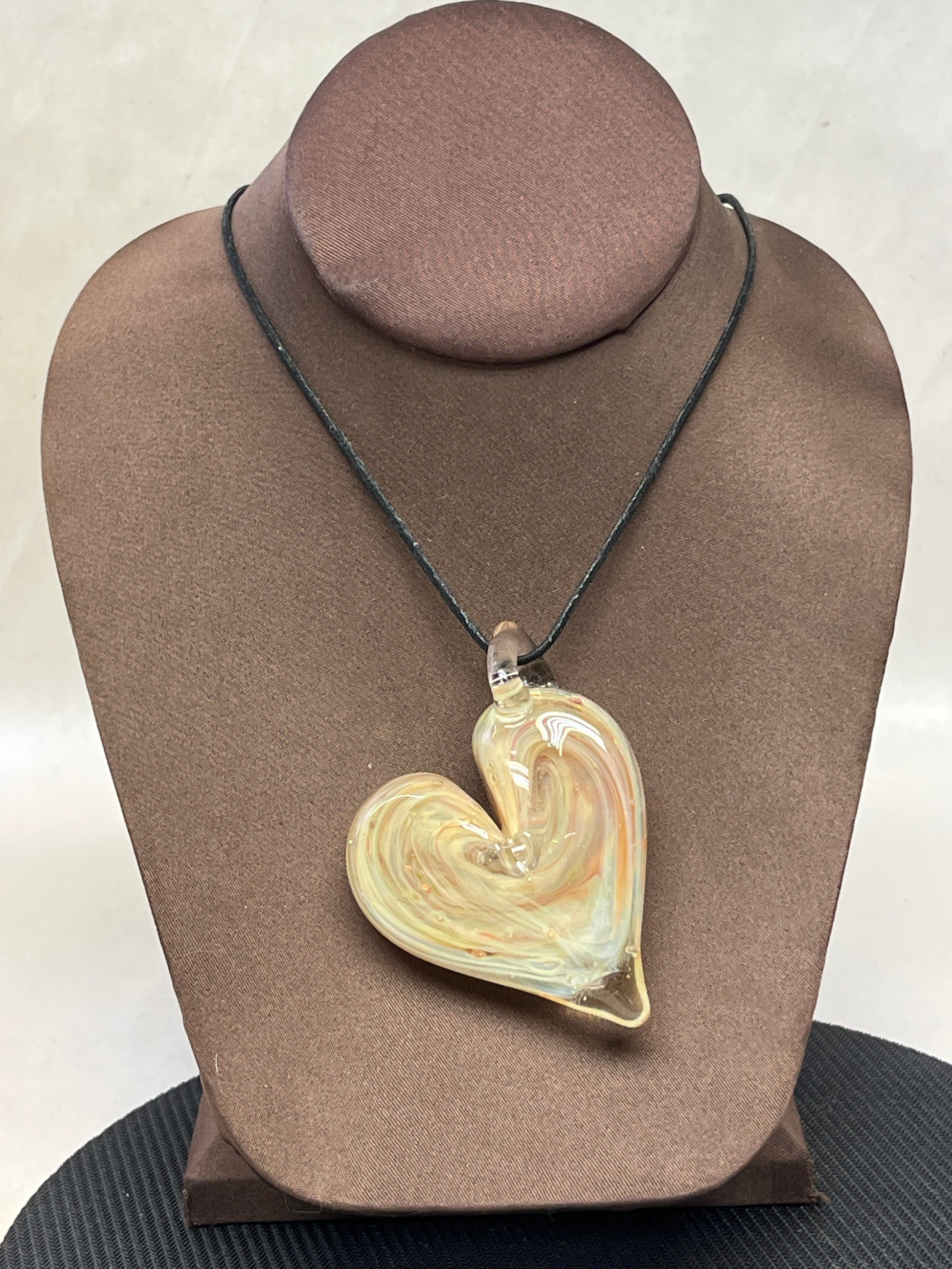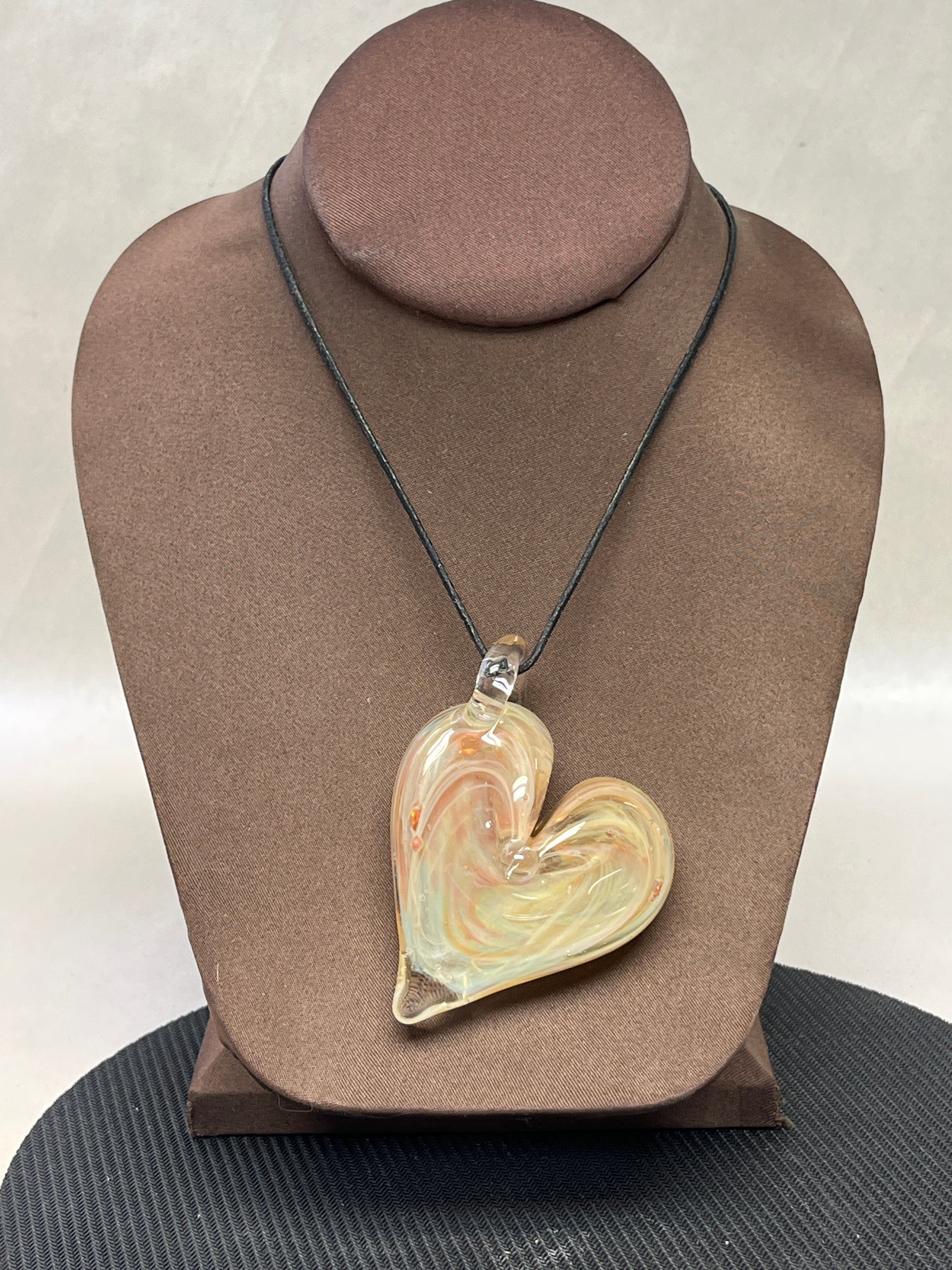 A heart forged in flame and sealed with precious metal. This handcrafted glass pendant features both silver fume and real silver inclusions, creating a luminous dance of shimmer and depth within the glass. Each pendant is one of a kind, with floating fragments of silver catching the light from every angle. A perfect blend of artistry and elemental elegance—crafted for those who carry love and fire close to the chest.