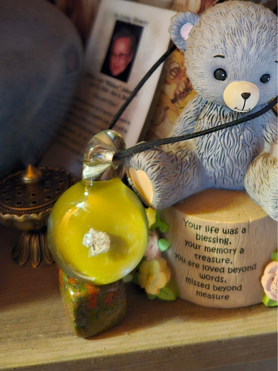 Price is for One memorial glass pendant small, medium or large the size is up to you, pictures are a sample of works I have created with ashes in them.