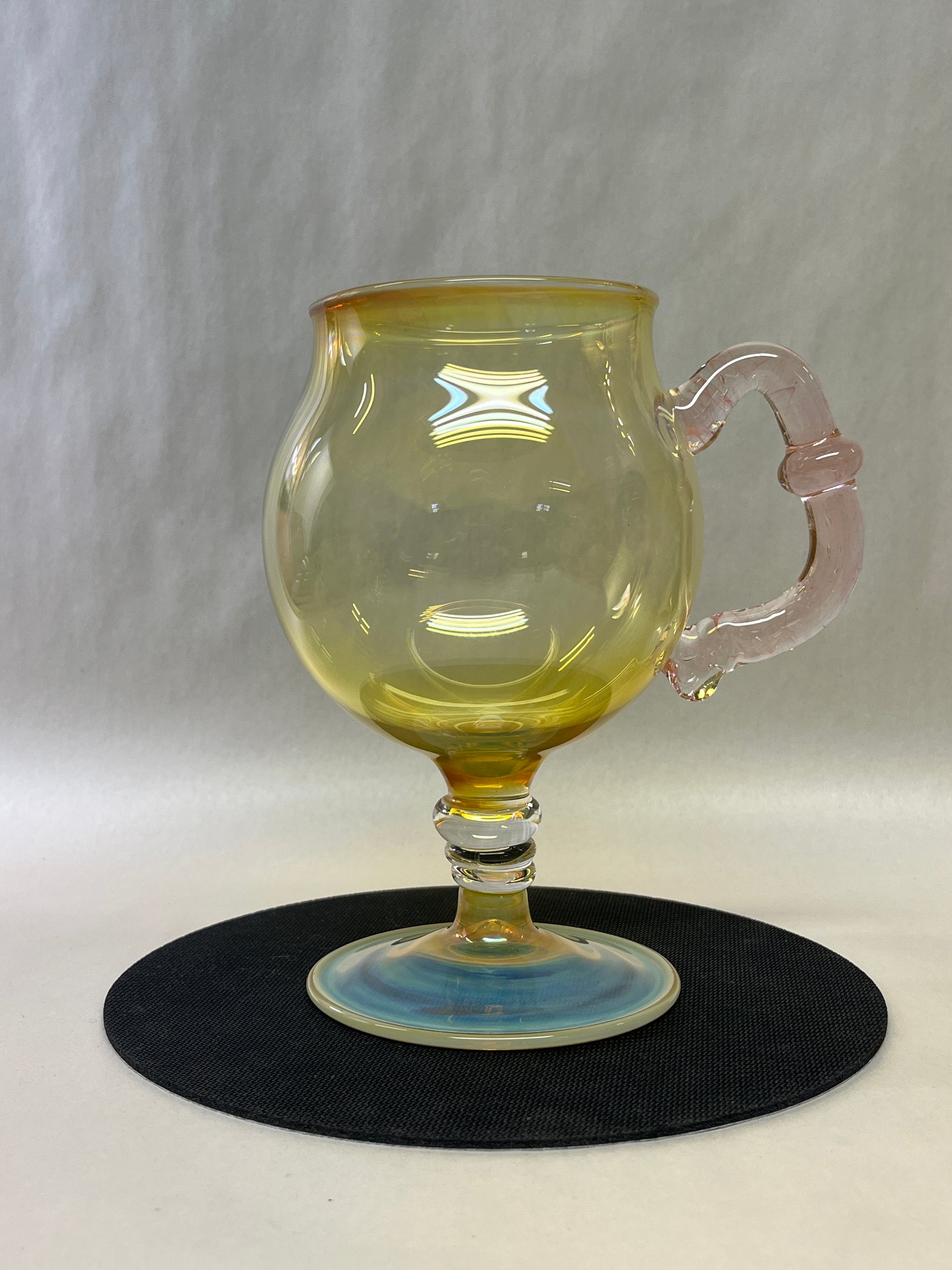 Each piece is individually made in Alaska using time-honored glassblowing techniques—no molds, no shortcuts. Built to hold your boldest brew or your most delicate pour, this cup blends elegance and strength in every curve.