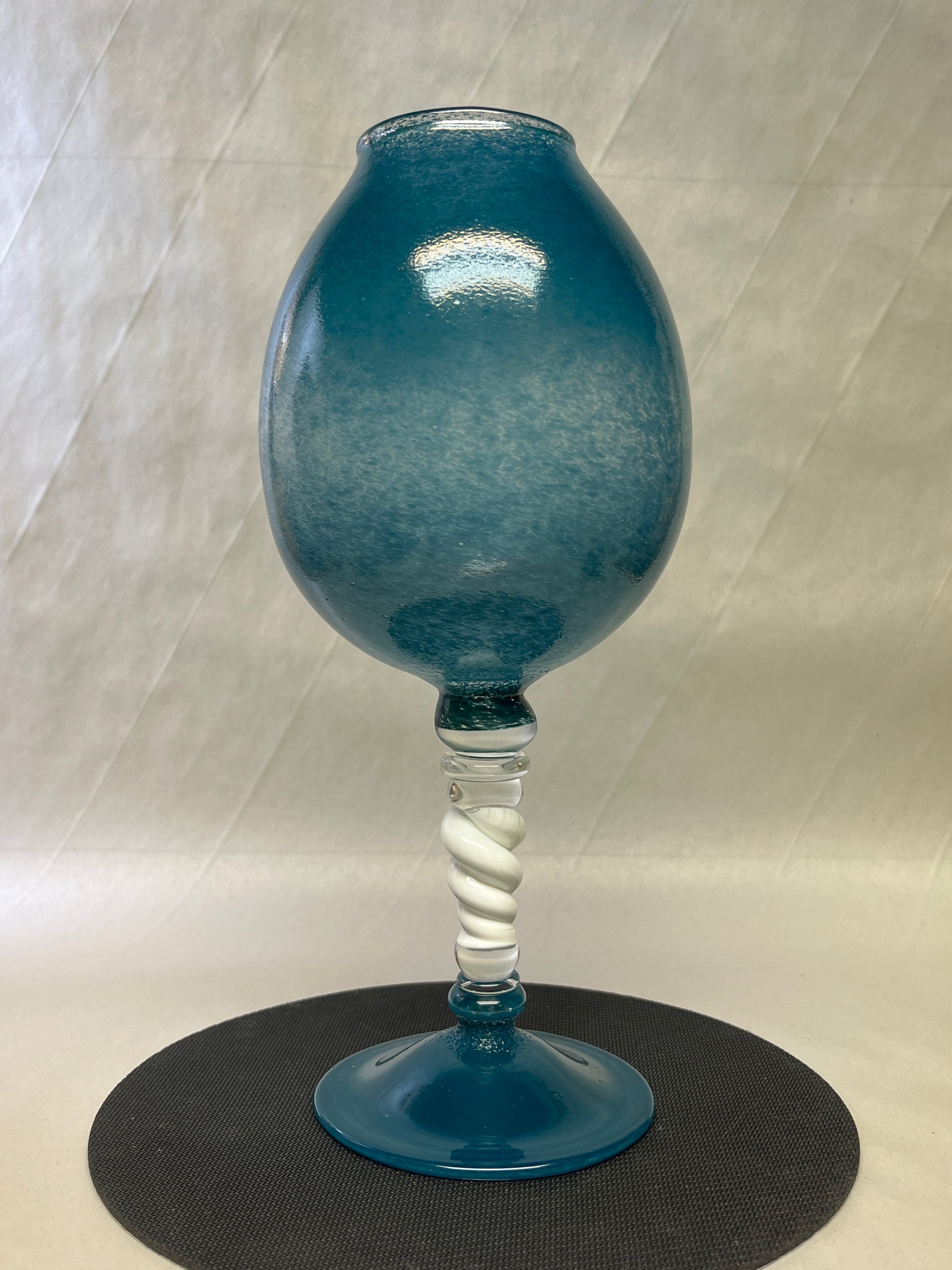 Elevate your drinking experience with this one-of-a-kind goblet, masterfully crafted by Throckmorton. The wide, balloon-style bowl enhances the bouquet of fine wines or spirits, while the elegantly sculpted stem—featuring a striking swirl of verdant green encased in clear glass—adds both visual depth and a luxurious hand feel. Perfectly balanced and kiln-annealed for durability, this goblet is a celebration of fire, form, and fluid artistry.